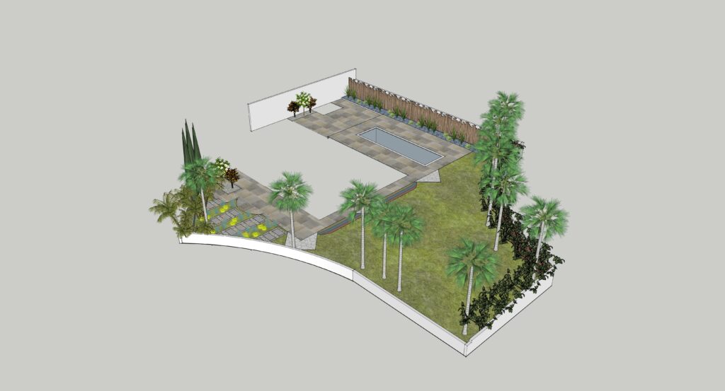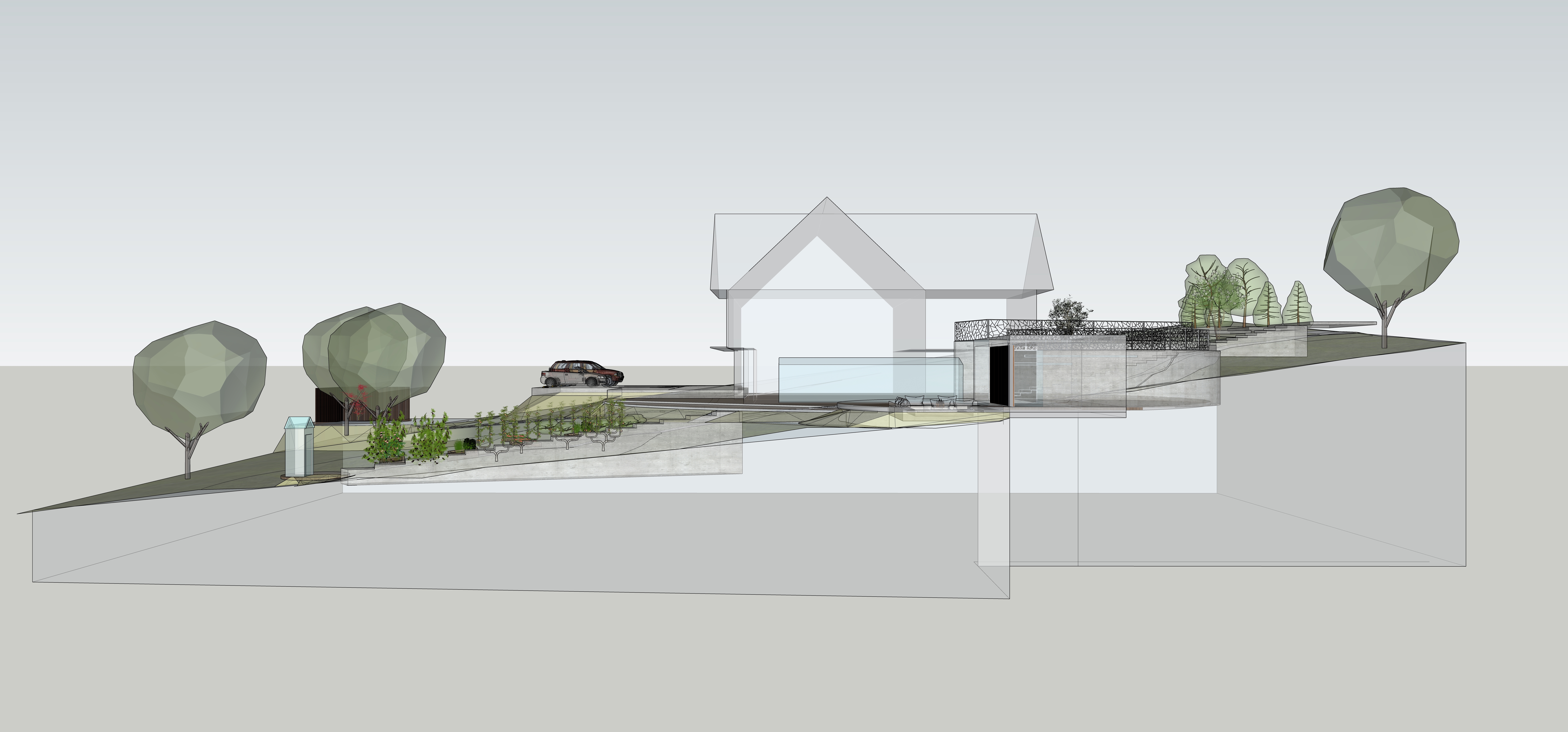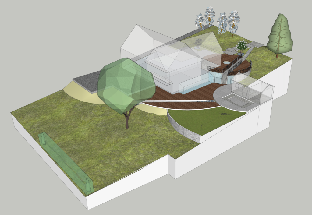 Le terrain en pente demande des espaces plates afin d’accès aux enfants tout en sécurité.