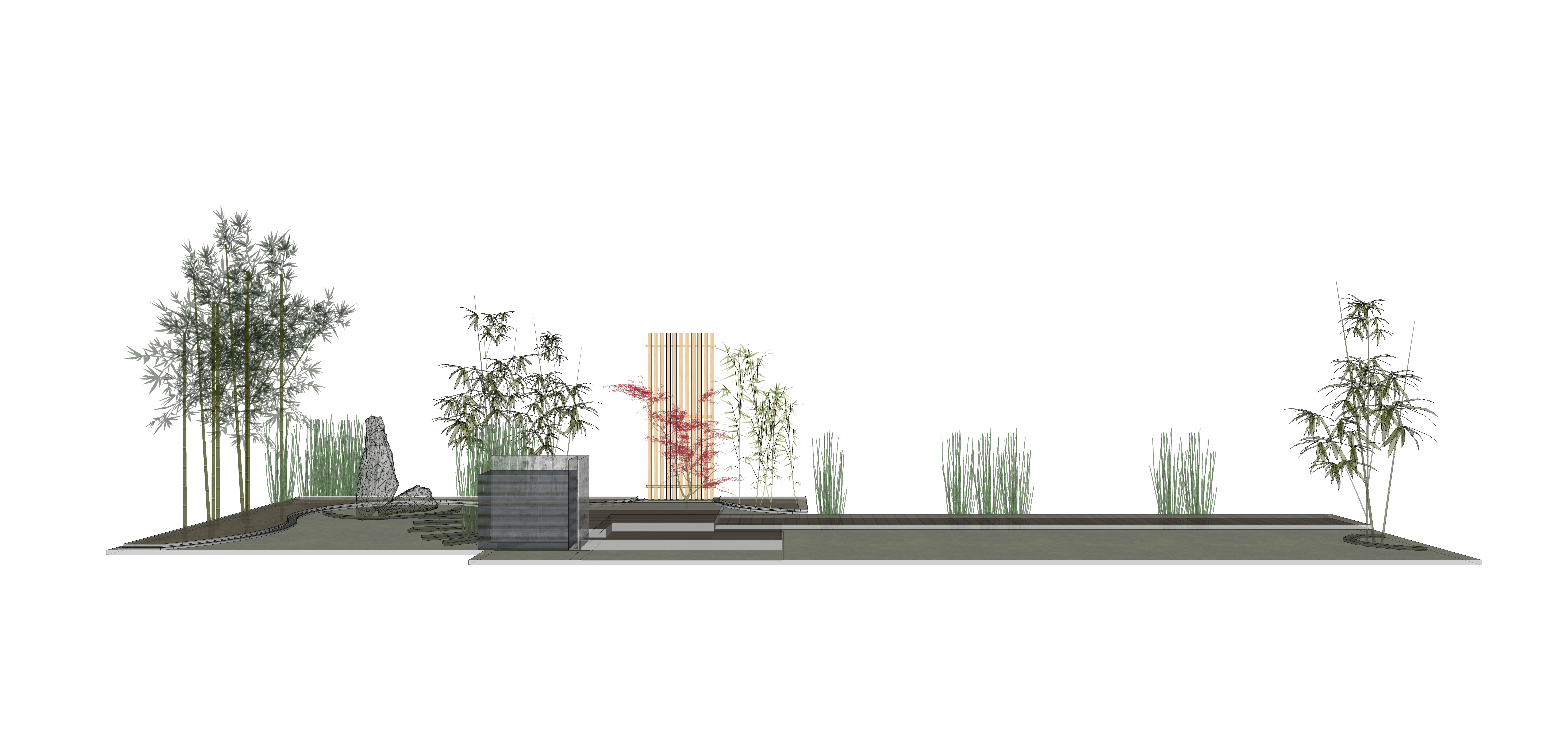 Les bambous variés sont sur place avant l’intervention. Un réaménagement demande l’harmonie de l’ambiance.