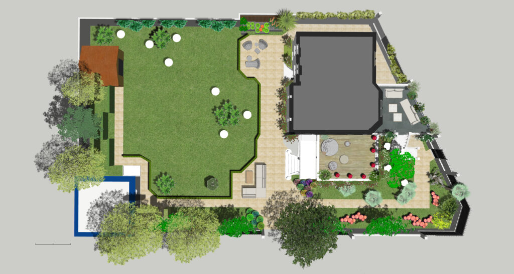 Jardin à harmoniser avec l’architecture moderne post-industriel